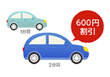 現在「おとなの自動車保険」にご契約中の方で、2台目以降のお車について、新たに「おとなの自動車保険」にご契約いただいた場合は「おとなの2台目割引」が適用され、保険料を600円割り引きます。